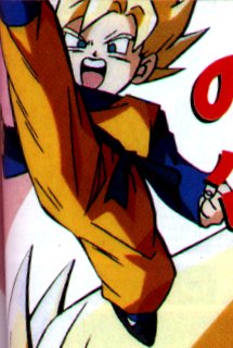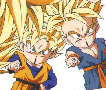 Goten kicking Goten ready to fight Goten, Trunks and Gotenks Goten and Trunks pointing