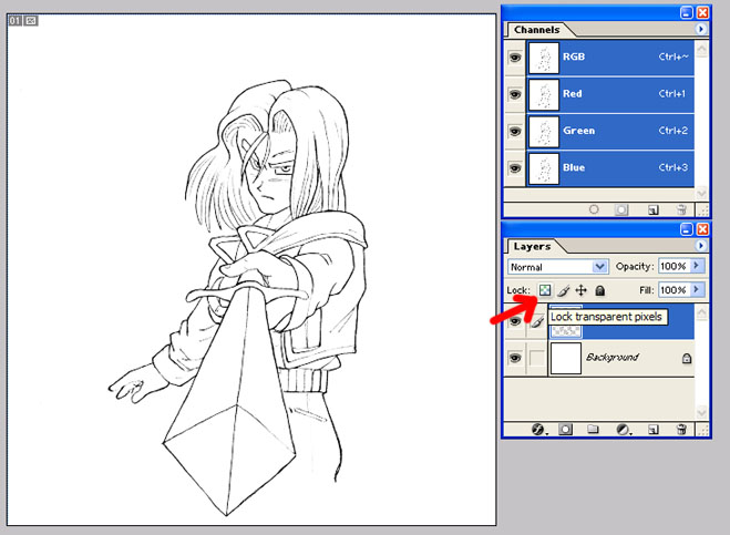 'lock transparent pixels'. Basically this means that you can only